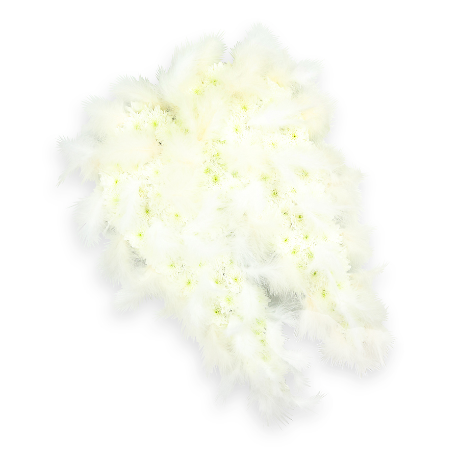 Show your support with our Tranquil White Tribute Arrangement. Featuring fresh white chrysanthemums and elegant white feathers, this bouquet embodies peace and respect.